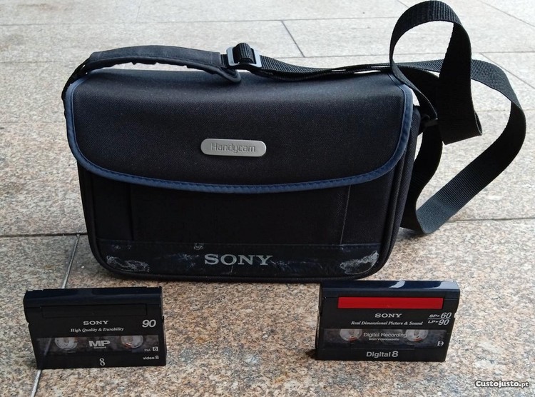 Vendo mala Sony de transportar câmaras de filmar ou câmaras fotográficas, e duas cassetes de filmar Digital 8 da câmara de filmar.