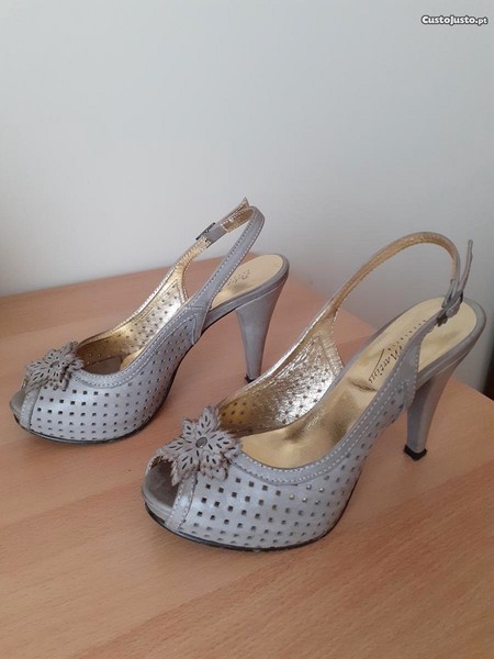 Sapato de pele cor nude sem calcanhar, marca Pedro Martins, Portugal. O salto tem 10 cm mas é muito confortável e seguro.