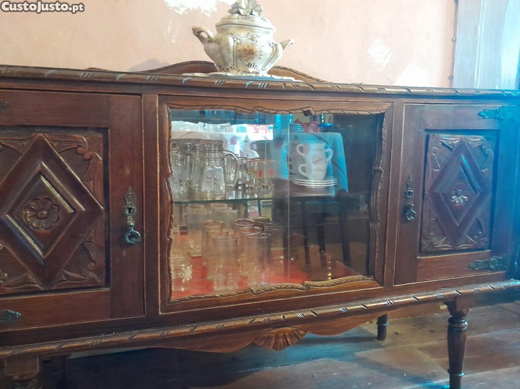 Preço: 200 €Aparador de madeira antigo com portas de vidro