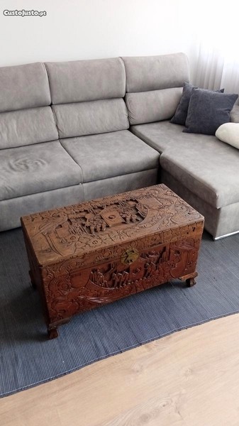 Artesanato de Qualidade: Cada detalhe da Arca Baú é fruto de habilidades artesanais excepcionais. Feita à mão, sua escultura meticulosa e os entalhes em bronze fosforado conferem-lhe uma qualidade que só o trabalho manual pode oferecer. Fabricada com madeira cânfora de alta qualidade, esta arca baú é robusta e resistente, garantindo anos de uso confiável. Seus fechos e entalhes em bronze adicionam não apenas um toque estético, mas também durabilidade e segurança ao seu conteúdo.