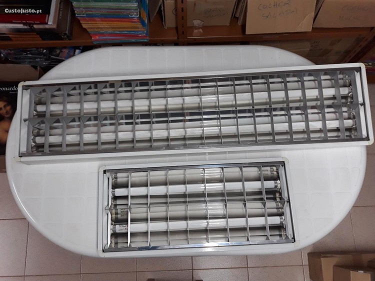 Armaduras com grelha refletora e lâmpadas fluorescentes, só tenho a pequena.