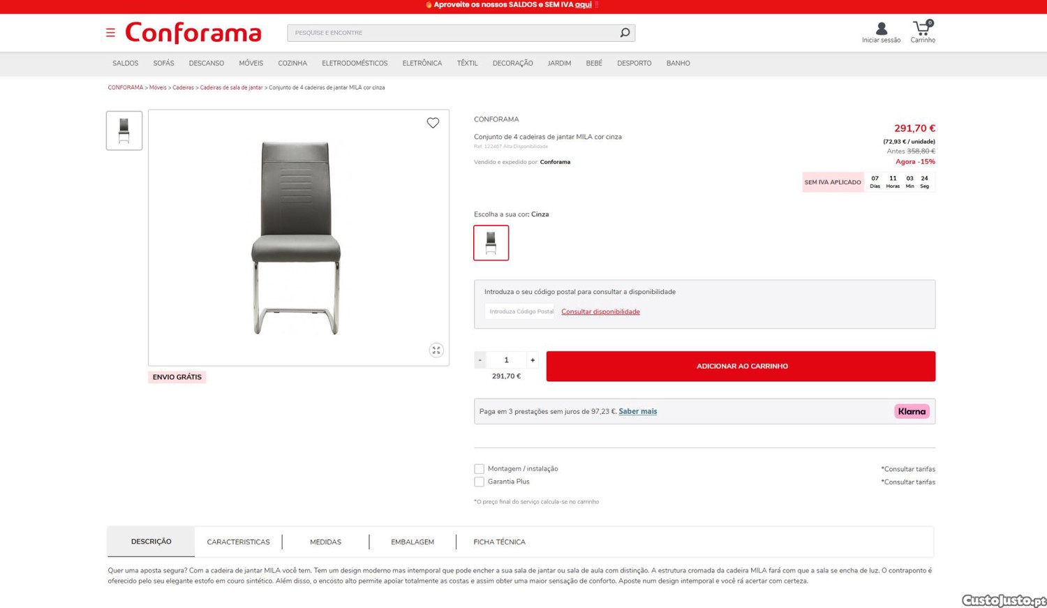 4 Cadeiras para mesa de cozinha em pele sintética compradas novas na conforama.