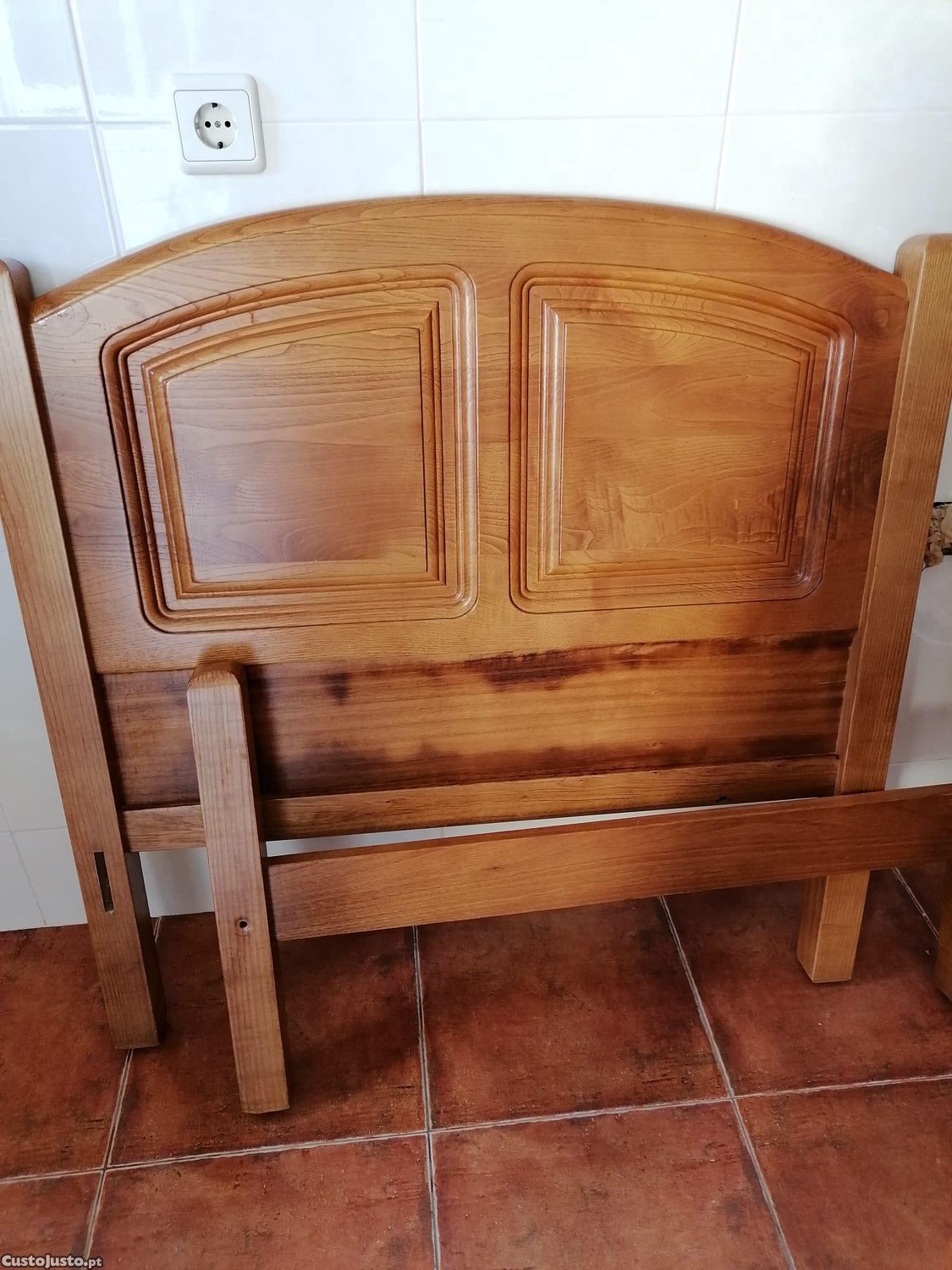 Cama de solteiro em madeira maciça, muito resistente e em ótimo estado.
