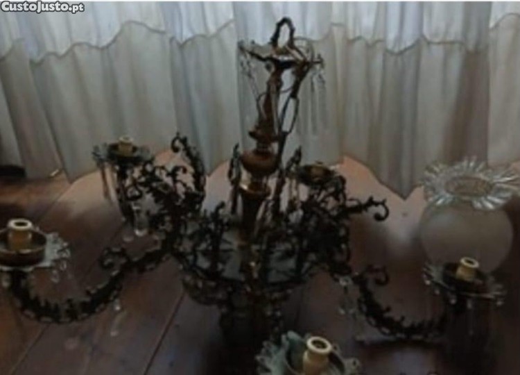 Preço: 230 €Candeeiro antigo com globos e apliques