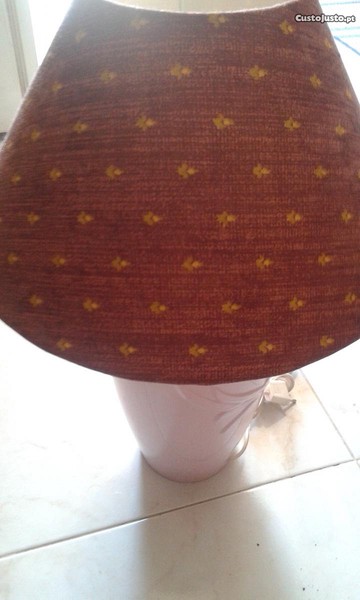 candeeiro decorativo em louça completo com lâmpada e abajur medidas 55 - 35