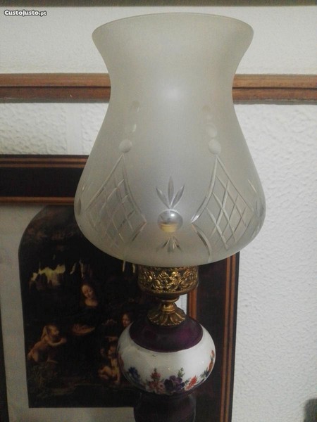 vendo, particularmente, candeeiro de mesa made in Italia antigo marca ALFA em tons de azul com decoração policromada na compra, em entrega em mão, oferta do cinzeiro da Alfa também