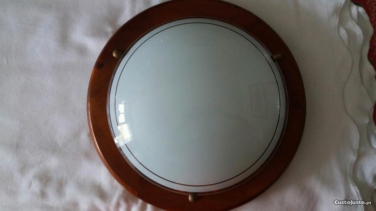Candeeirio / plafond com aro em madeira encerada vidro diametro 33 cm