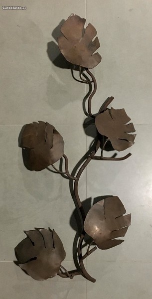 Vendo escultura em metal de cor cobre/ferrugem com 5 folhas interligadas.