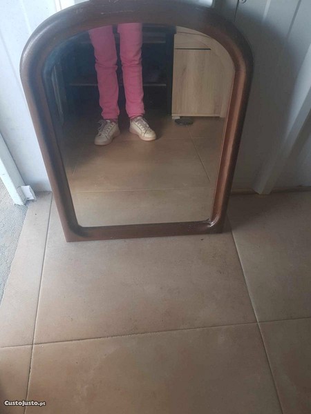Espelho com Moldura em Madeira De Castanho, com a parte de cima oval, dos anos 80 a 90. Medidas 50cm largura * 67cm de altura.