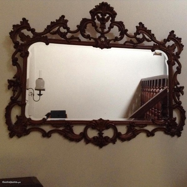 Vendo espelho em madeira maciça trabalhado em bom estado.