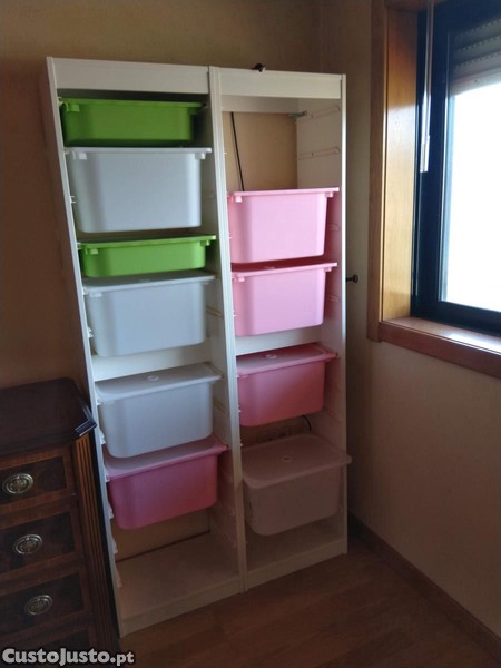 Estantes que permitem diferente arrumação com caixas. Inclui 2 módulos com 46x30x145 cm.