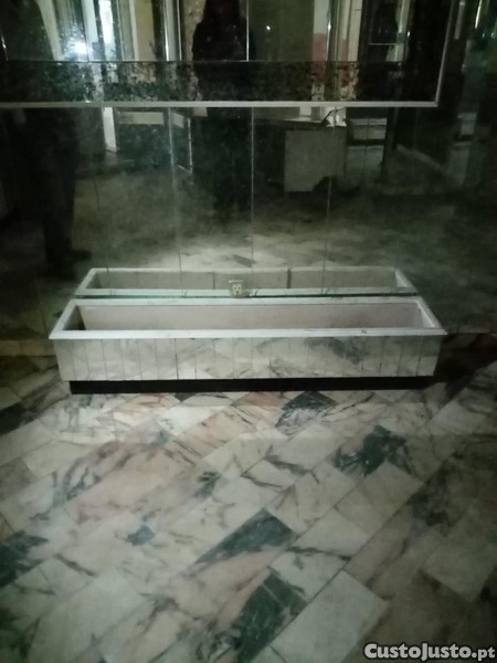 Preço: 36 €Floreira em madeira revestida a espelhos. Dimensões: 154 x 31 x 30 cm