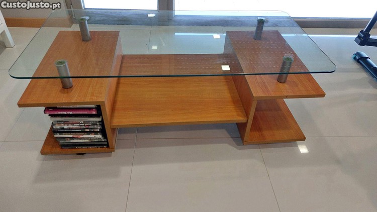Mesa de sala de centro com tampão de vidro