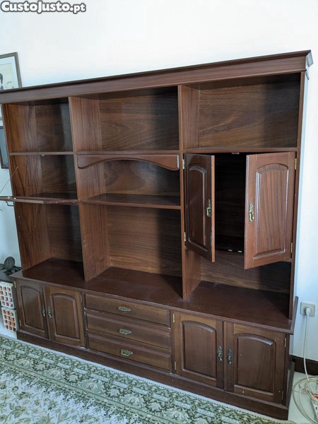 Móvel simples para sala, com diversa arrumação. Espaço para TV pequena.
