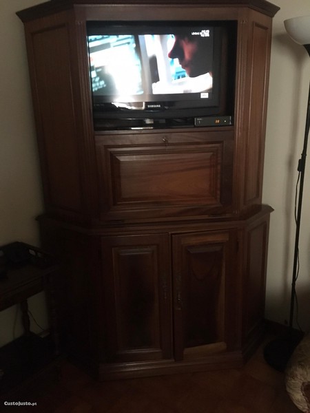 Vendo móvel de sala de canto todo em madeira em bom estado tem um bar com porta em baixo tem duas portas para por objetos o móvel divide se em duas partes para me contactar pode ligar ou enviar email