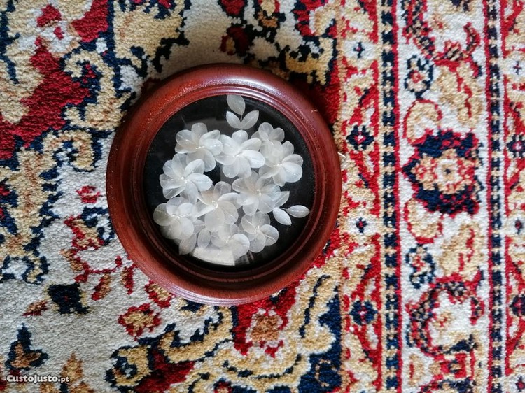 Peça de artesanato, feita à mão utilizando escamas de peixe.
