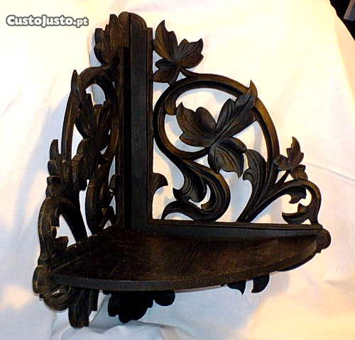 Prateleira de canto em madeira trabalhada