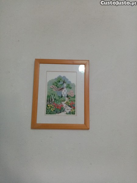 Preço: 39 €Quadro 36x29cm com moldura em madeira revestida pinho - Casa de campo (em ponto cruz)
