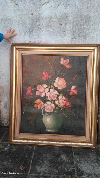 Quadro com motivo floral.Caixilho em madeira 77x90