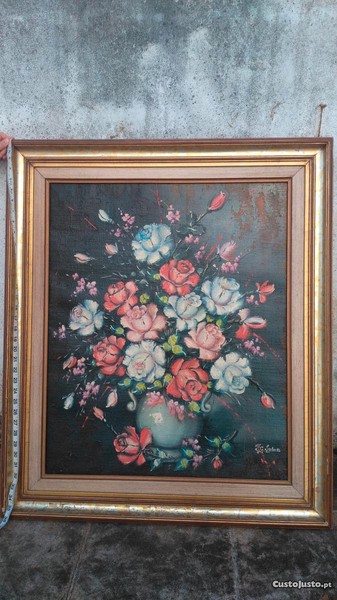 Quadro com motivo floral.Caixilho em madeira 77x90