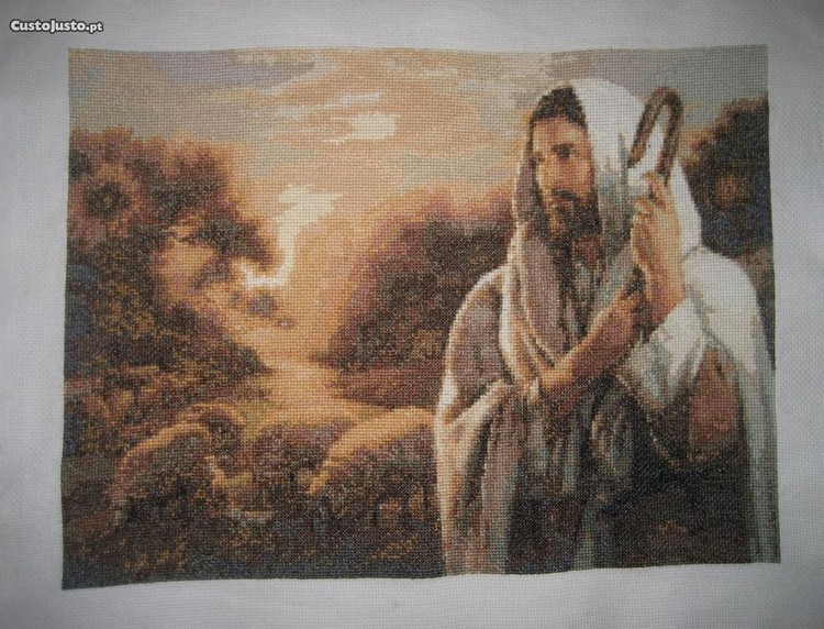 Preço: 80 €Quadro de Cristo com as ovelhas em ponto cruz