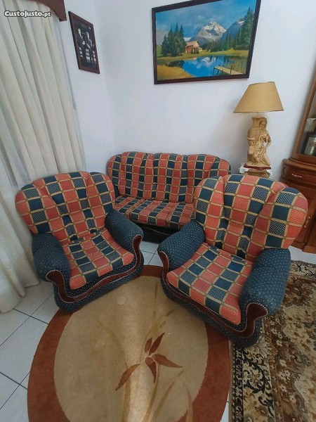 composto por um sofá cama de 3 lugares e mais dois cadeirões incluídos todo o conjunto a condizer.