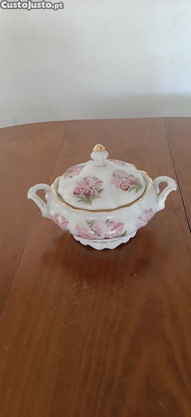 Preço: 25 €Terrina média de decoração em louça colorida com tampa.
