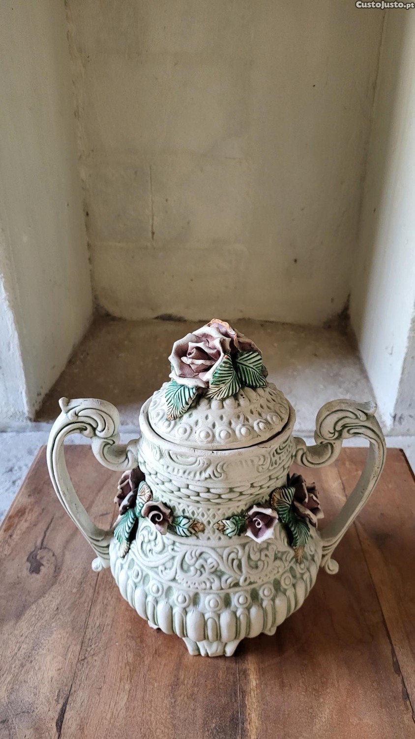 Preço: 80 €Urna ou Jarra Decorativa em Cerâmica com Rosas em Relevo