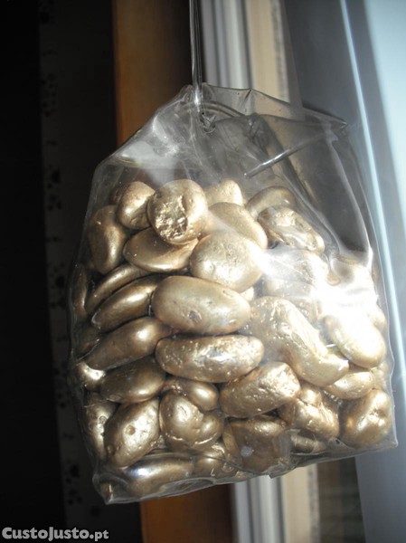 Preço: 2 €1,25Kg de pedras pintadas de dourado para arranjos/decorações