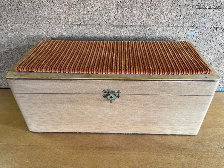 Preço: 15 €Caixa guarda-joias rectangular com tampa revestida a veludo (já c/ portes)