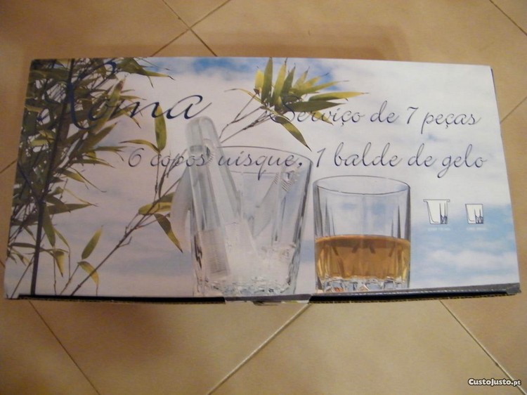 Conjunto 7 peças, composto por 6 copos + balde para gelo + pinça para gelo, novo, na caixa original (nunca foi usado)