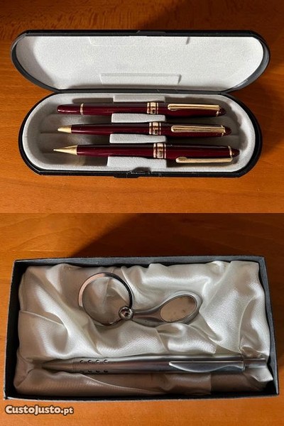 Outro conjunto composto por uma esferográfica e um porta-chaves em caixa própria.