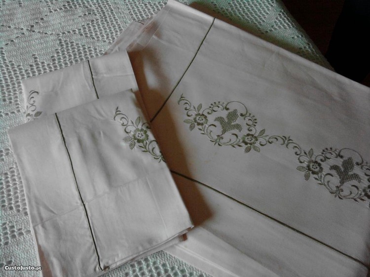 Preço: 40 €Jogo de lençóis cor de rosa bordado à máquina