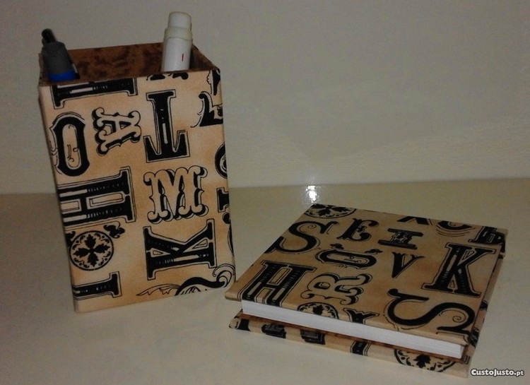 Kit de secretária, em cartonagem. O seu valor é de 9EUR + portes de envio.