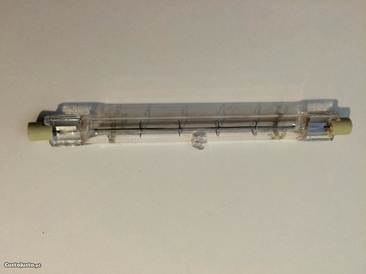 Lâmpada de halogéneo de 1000W, com 125 mm de comprimento, com pouco uso.