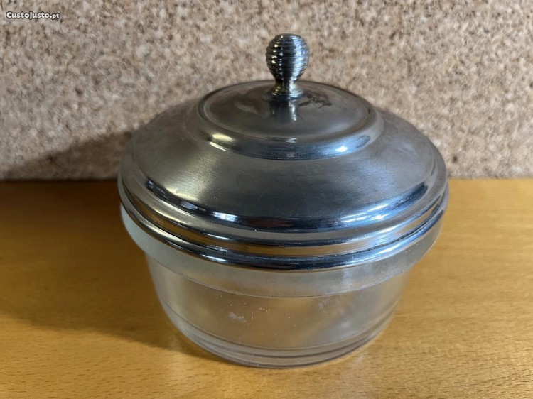Manteigueira antiga em boa condição, com tampa a fechar muito bem ajustando perfeitamente ao rebordo do vidro.