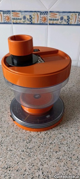 Ralador de legumes com 3 opções de corte,com balança de precisão incorporada, tendo a opção do peso ,até 3kg ,ou das calorias , a funcionar perfeitamente e em excelente estado de conservação.