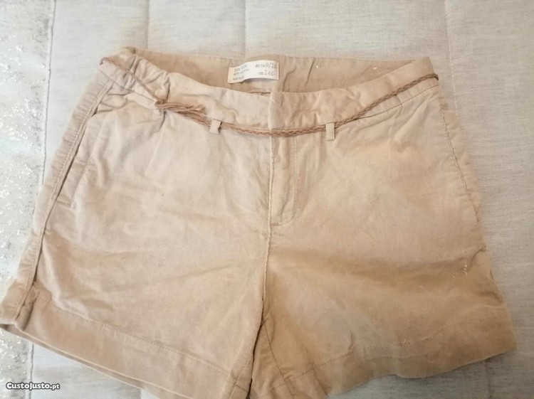 Calções bejes de bombazine de menina, marca Zara,(9- 10 anos),com um cinto incluído.