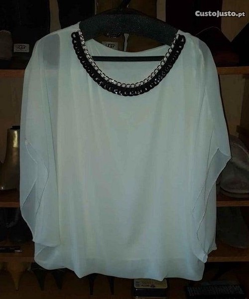 Preço: 5 €Blusa branca com corrente preta e dourada, nova