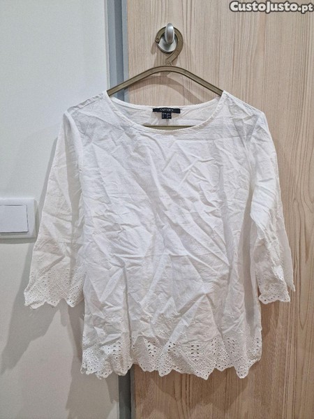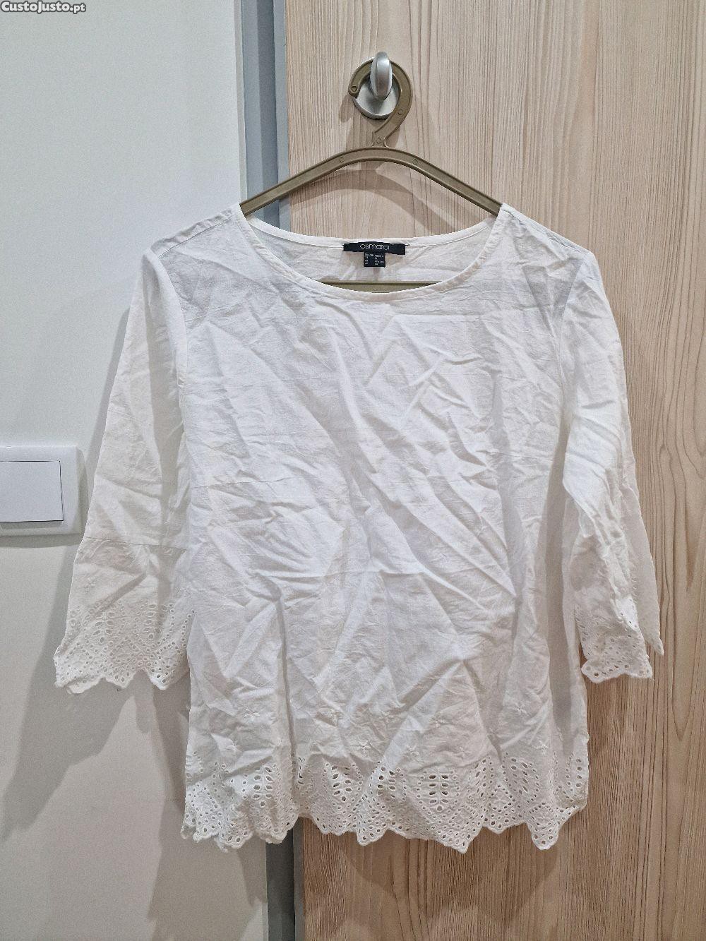 Blusa branca da marca Camaïeu, em algodão leve e confortável, com mangas a 3/4.
