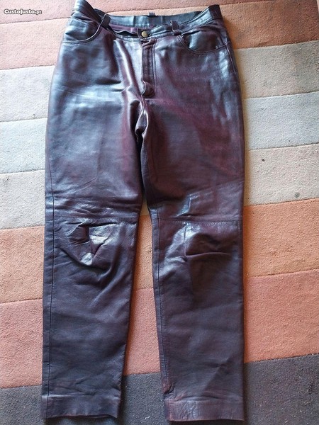 calcas em pele couro bordeux tamanho 40/42 impecaveis