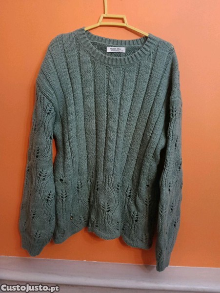camisola verde da Moda Ana com detalhe nas mangas e na frente da camisola.
