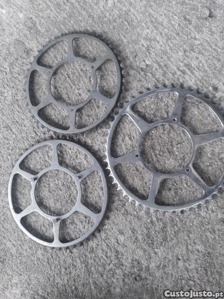 3 pratos de pedaleira antiga modelo inglesas atenção ver furação dos crenks para ver se é compatível com o que procura estão como mostra as fotos tenho mais bicicletas e peças ver os meus outros anúncios para contactar ou tirar alguma duvida através do anuncio enviar mensagem ao anunciante ou através do contacto que está no anuncio muito obrigado..nota: o valor é do conjunto das 3