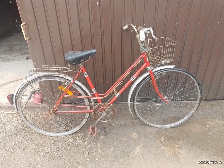 Bicicleta antiga tipo janette para restauro completa aros em alumínio fabrico nacional boa base para restauro mas com pneus novos e limpeza fica boa pois ela está funcional só falta pneus para andar bicicletas de época e muito bonitas com cesto como mostra as fotos tenho mais bicicletas e peças ver os meus outros anúncios para contactar ou tirar alguma duvida através do anuncio enviar mensagem ao anunciante ou através do contacto que está no anuncio muito obrigado