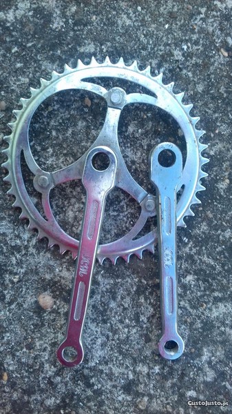 Pedaleira para bicicleta Pasteleira nacional marca UCAL nova nunca foi usada 46 dentes como se pode ver nas fotos completa com crenk da lado esquerdo material antigo alguma duvida fazer contactar o anunciante tenho mais peças e bicicletas ver os meus outros anúncios muito obrigado