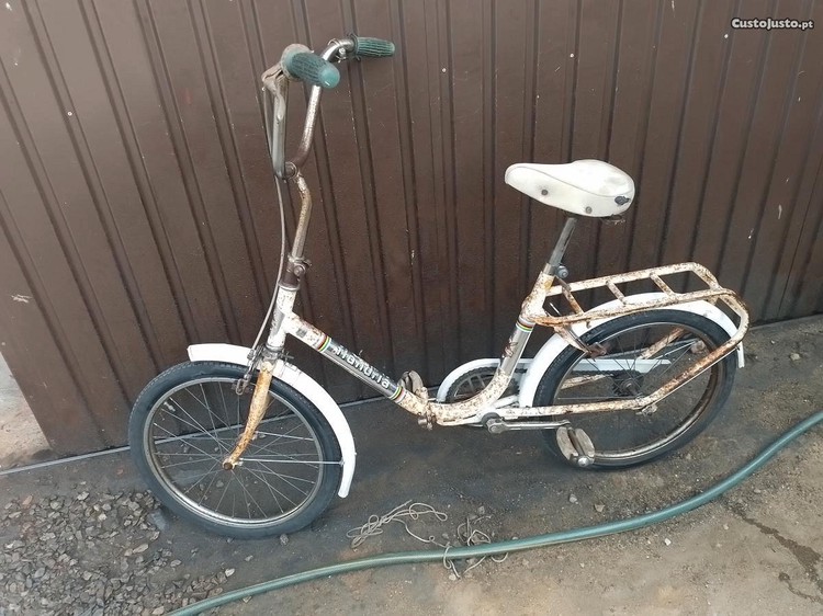 Bicicleta dobrável roda 20 FLANDRIA funcional e original bicicleta pratica dá para dobrar requer pouca intervenção só uma limpeza e uma ou outra afinação quadro robusto boa peça para restauro está como mostra as fotos tenho mais bicicletas e peças ver os meus outros anúncios para contactar ou tirar alguma duvida através do anuncio enviar mensagem ao anunciante ou através do contacto que está no anuncio muito obrigado