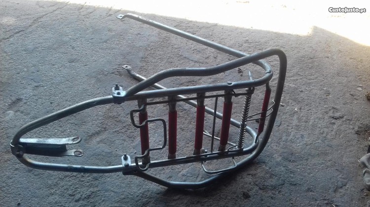 Suporte traseiro de carga não sei a origem mas dá para aplicar em varias bicicletas robusto e original está como mostra as fotos alguma duvida fazer contactar o anunciante tenho mais peças e bicicletas ver os meus outros anúncios muito obrigado
