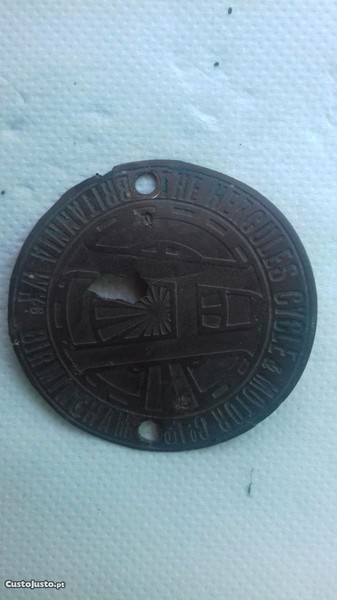 Chapa de testa HERCULES inglesa muita antiga para bicicletas antigas da marca ou para colecionadores no seu estado original está como mostra as fotos tenho mais bicicletas e peças ver os meus outros anúncios para contactar ou tirar alguma duvida através do anuncio enviar mensagem ao anunciante ou através do contacto que está no anuncio muito obrigado.nota importante:como é visível nas fotos tem um pequeno buraco na chapinha fruto dos anos.