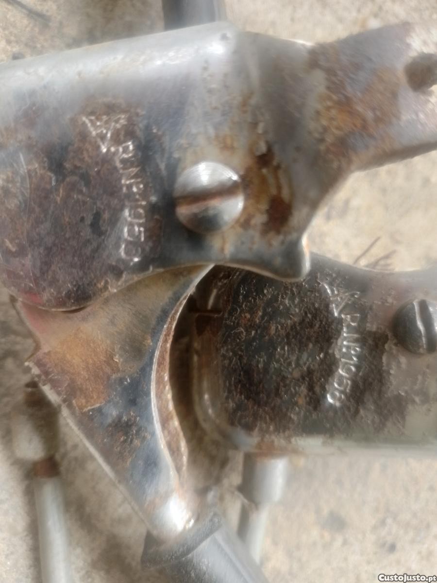 Conjunto completo de peças de travão de pasteleira E.F.S para o seu restauro cromar ou colocar assim em bicicleta antiga estão como mostra as fotos tenho mais bicicletas e peças ver os meus outros anúncios para contactar ou tirar alguma duvida através do anuncio enviar mensagem ao anunciante ou através do contacto que está no anuncio muito obrigado nota o preço mencionado é do conjunto todo