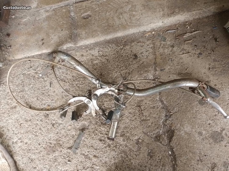 Guiador para pasteleira de fios com manetas ferraduras e avanço EFS completo e em bom estado de funcionamento com uma limpeza fica razoável sai toda a ferrugem superficial estão como mostra as fotos tenho mais bicicletas e peças ver os meus outros anúncios para contactar ou tirar alguma duvida através do anuncio enviar mensagem ao anunciante ou através do contacto que está no anuncio muito obrigado.